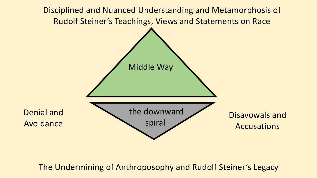 Here I seek to show how both the denial of Rudolf Steiner’s seeming racist views (or the unwillingness to honestly examine or acknowledge these views), and the disavowal of those views without a proper effort toward a deeper understanding of them (or the knee jerk accusation that Rudolf Steiner was a racist), can both be seen as one-sided responses.